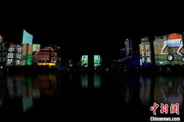 杭州点亮“五一”主题灯光秀 致敬劳动者