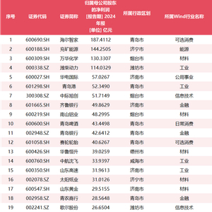 同样,龙头股对区域板块带动效应明显。像烟台的万华化学、青岛的海尔智家、济宁的兖矿能源、潍坊的潍柴动力等,均为利润贡献大户。