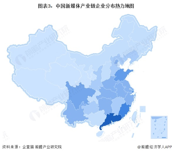 新媒体产业链区域热力地图:广东、福建企业密度最高
