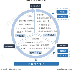 从产业链环节来看,新媒体行业是一项由多方共同写作的产业链闭环。其中互联网平台提供各种橱窗,让作品及内容能在这一橱窗中展现,包括游戏平台、在线视频平台、电竞平台、直播平台、内容社区软件等;创作平台则是由个人或机构所组成,当中包括游戏、电竞、影视、直播、文章等创作,同时也存在一些互联网营销管理的MCN机构、新媒体营销机构等;广告主在这当中投放营销费用,提出宣传需求,让网络营销机构、MCN机构借助互联网平台将广告进行展示,吸引消费者和用户关注。