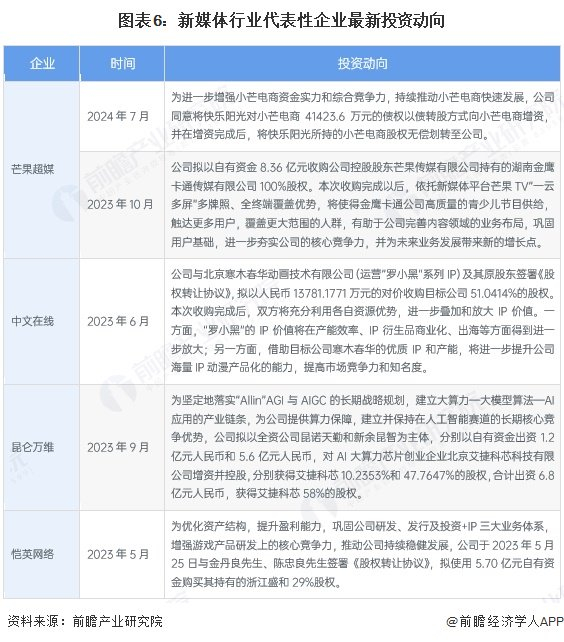 新媒体产业代表性企业最新投资动向