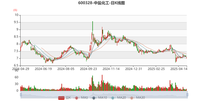 以4月28日收盘价计算,中盐化工目前市盈率(TTM)约为22.27倍,市净率(LF)约0.87倍,市销率(TTM)约0.81倍。
