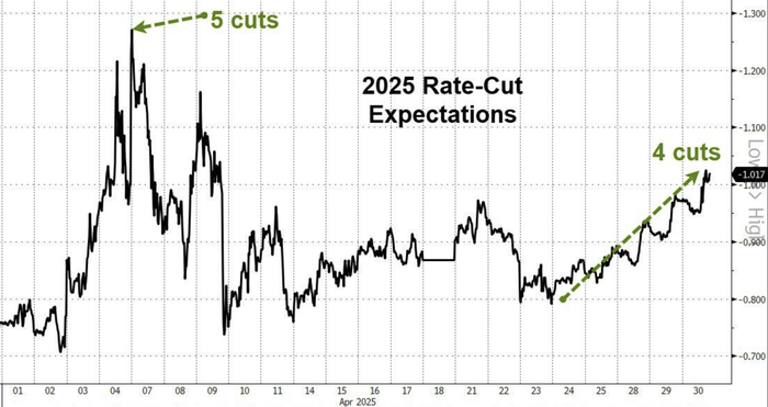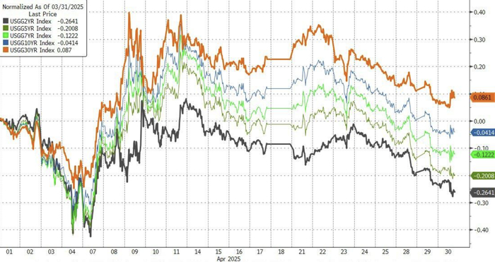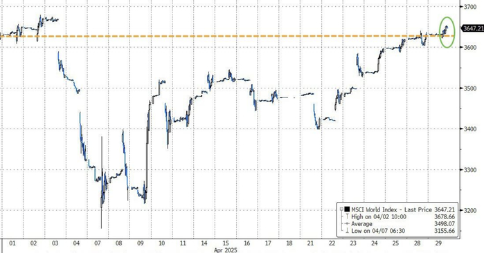 金融博客ZeroHedge调侃道,如果你整个4月都休假,你永远不会知道特朗普发起了有史以来最大规模的关税战,因为全球股指在经历了14%的大跌后,最终在月底几乎全部收复失地。