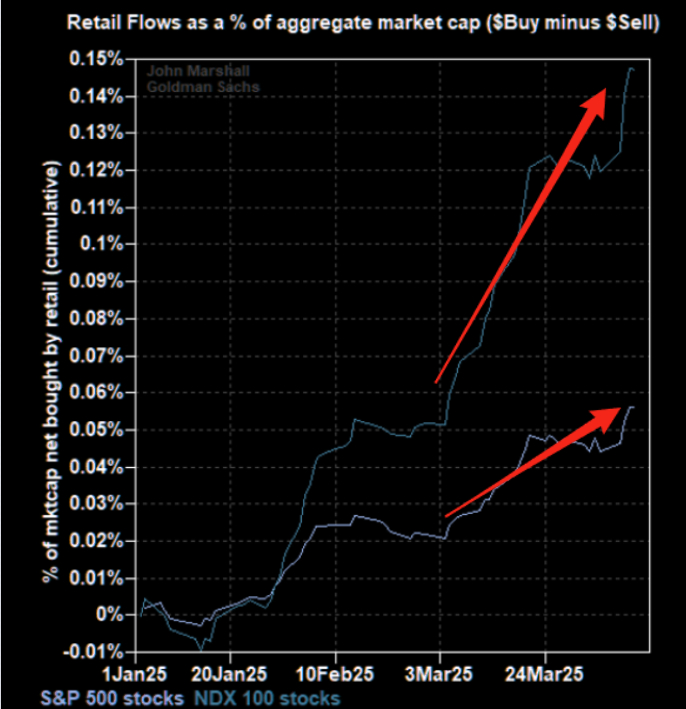 与此同时,美股散户投资者却依旧凶猛增持,尤其是在纳斯达克市场,反映出散户投资者的乐观情绪。