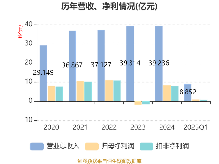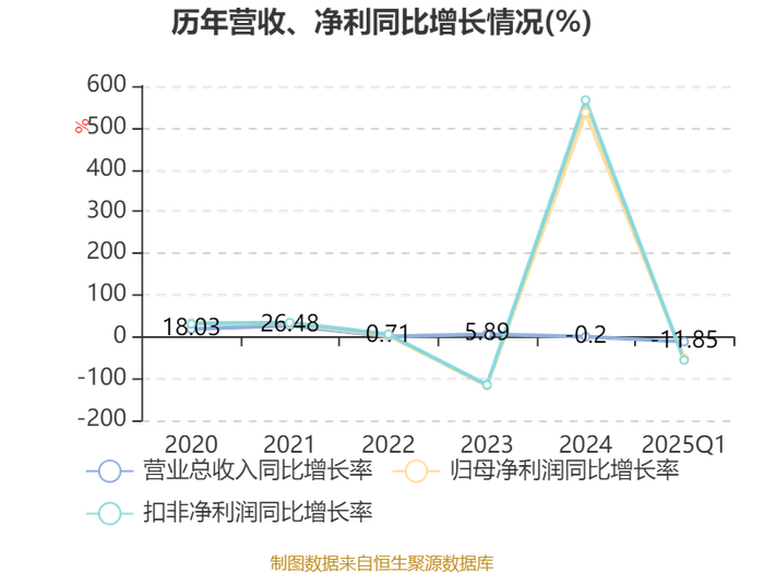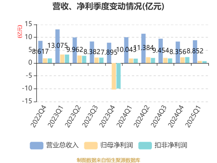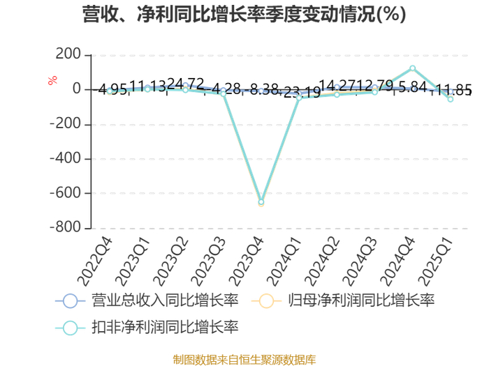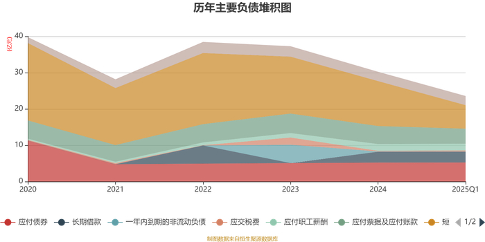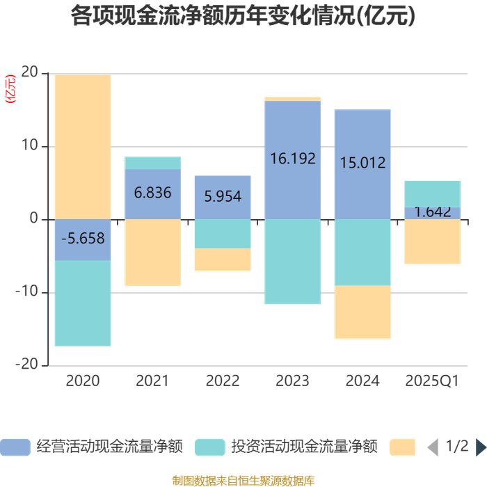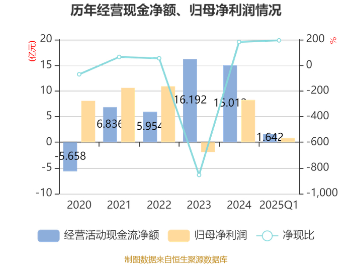 截至2025年一季度末,公司经营活动现金流净额为1.64亿元,同比下降18.29%;筹资活动现金流净额-6.12亿元,同比减少10.94亿元;投资活动现金流净额3.6亿元,上年同期为-7.9亿元。