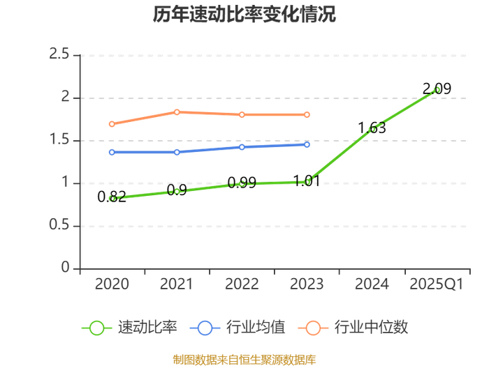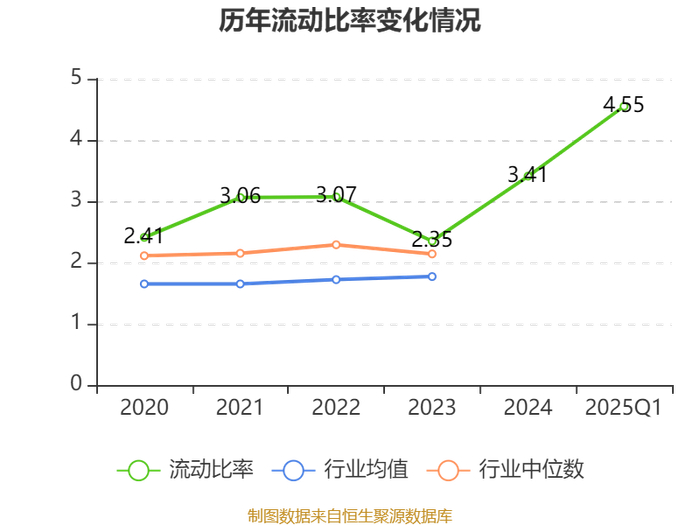2025年第一季度,公司流动比率为4.55,速动比率为2.09。