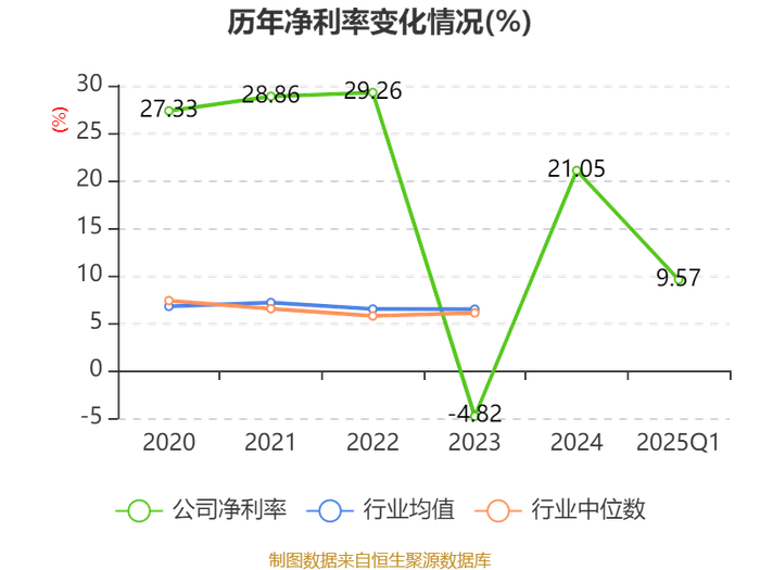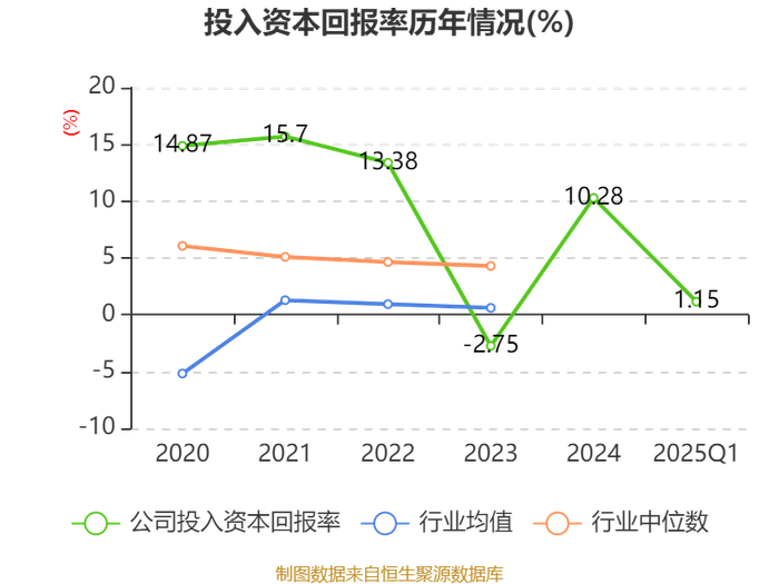 盈利能力方面, 2025年一季度公司加权平均净资产收益率为1.3%,同比下降1.71个百分点。公司2025年第一季度投入资本回报率为1.15%,较上年同期下降1.07个百分点。