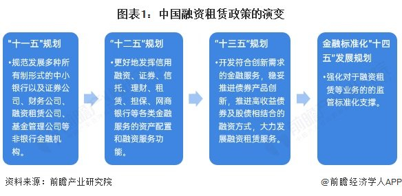 “十一五”时期融资租赁的政策主要强调行业规范发展,“十二五”时期开始关注融资租赁对于支持实体经济的服务能力。经历了前期的发展,中国已经逐渐建立起行业快速发展的环境,于是,“十三五”明确提出大力发展融资租赁业务,到了“十四五”期间行业的监管体系进一步完善,为行业健康发展提供了基础。