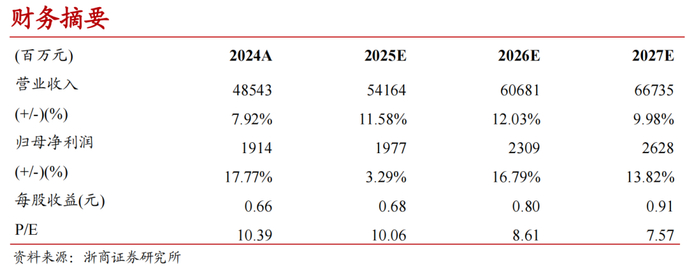我们预计2025年行业价格竞争或将加剧,头部份额诉求强烈,叠加公司网点管理有待进一步改善,我们预计韵达股份2025-2027年归母净利润分别为19.8、23.1、26.3亿元,对应PE分别为10.1、8.6倍、7.6倍,维持“增持”评级。