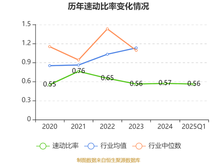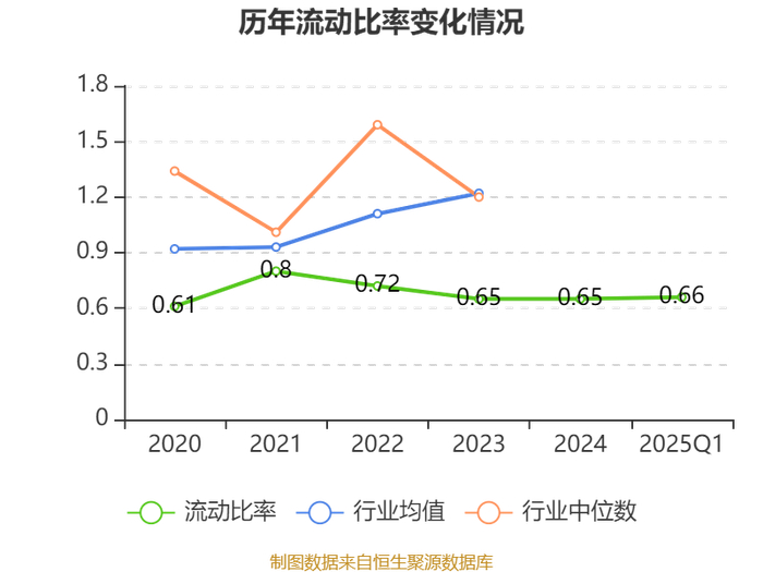 2025年第一季度,公司流动比率为0.66,速动比率为0.56。