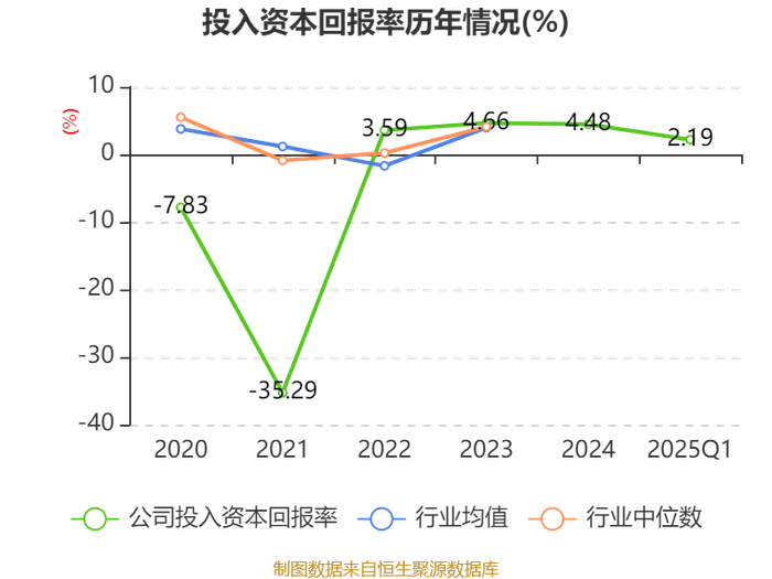 盈利能力方面, 2025年一季度公司加权平均净资产收益率为12.87%,同比下降15.27个百分点。公司2025年第一季度投入资本回报率为2.19%,较上年同期上升0.15个百分点。