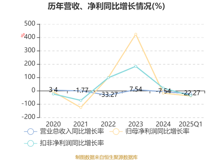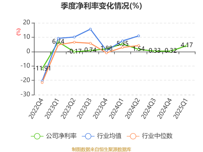 负债重大变化方面,截至2025年一季度末,公司应付票据及应付账款较上年末增加5.08%,占公司总资产比重上升1.42个百分点;一年内到期的非流动负债较上年末增加29.62%,占公司总资产比重上升1.4个百分点;短期借款较上年末减少3.22%,占公司总资产比重下降1.08个百分点;其他应付款(含利息和股利)较上年末减少17.76%,占公司总资产比重下降1.01个百分点。