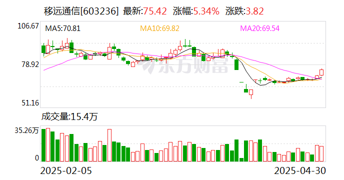移远通信:2025年一季度净利润2.12亿元 同比增长286.91%