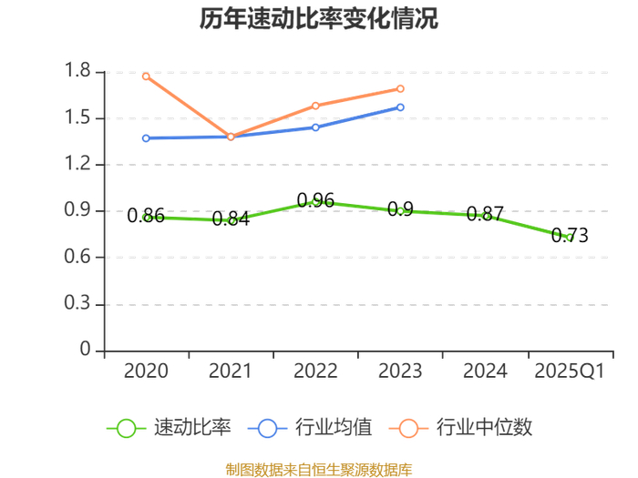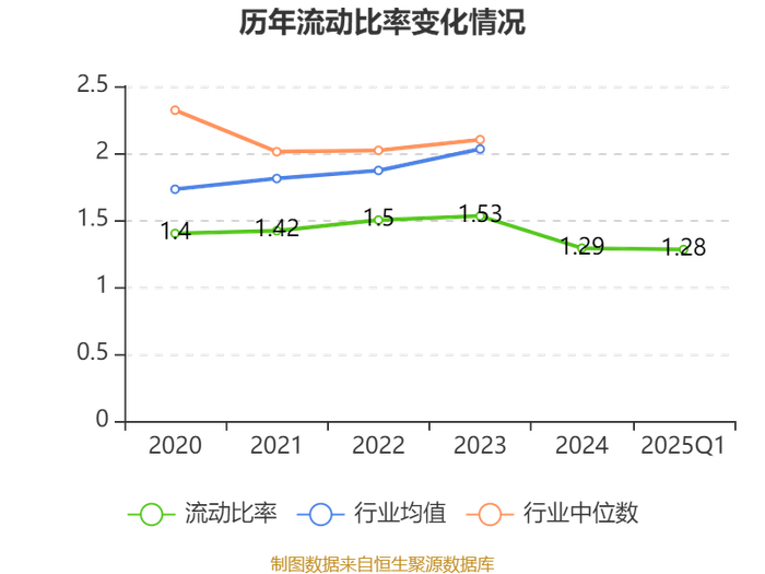 2025年第一季度,公司流动比率为1.28,速动比率为0.73。