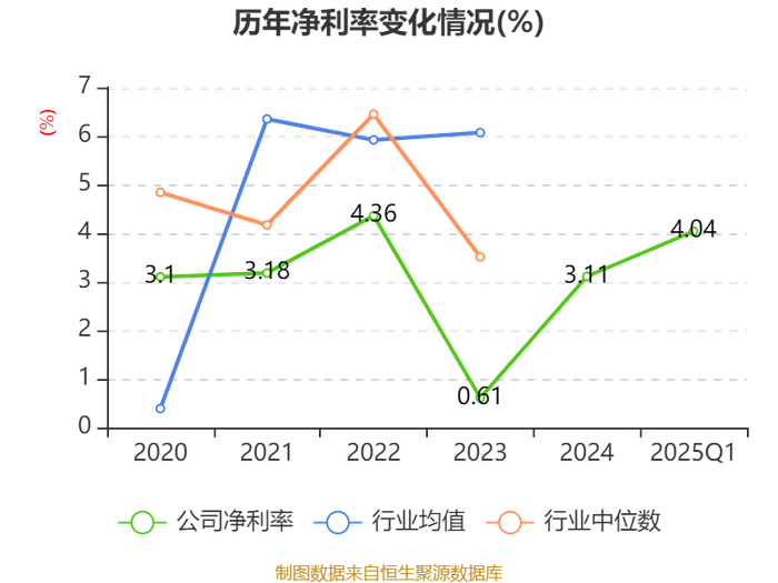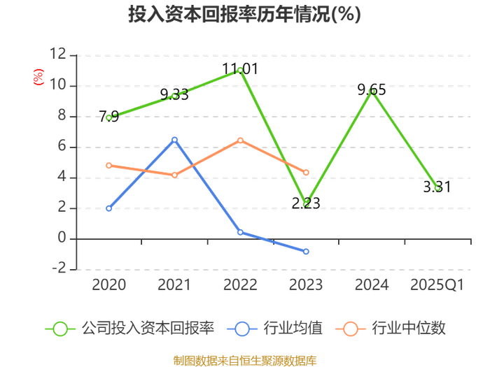 盈利能力方面, 2025年一季度公司加权平均净资产收益率为5.14%,同比上升3.63个百分点。公司2025年第一季度投入资本回报率为3.31%,较上年同期上升2.28个百分点。