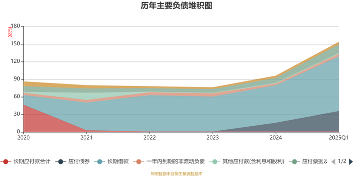 负债重大变化方面,截至2025年一季度末,公司长期借款较上年末增加46.07%,占公司总资产比重上升8.94个百分点;应付债券较上年末增加133.35%,占公司总资产比重上升6.61个百分点;应付票据及应付账款较上年末增加70.22%,占公司总资产比重上升1.95个百分点;一年内到期的非流动负债较上年末增加44.14%,占公司总资产比重上升0.39个百分点。