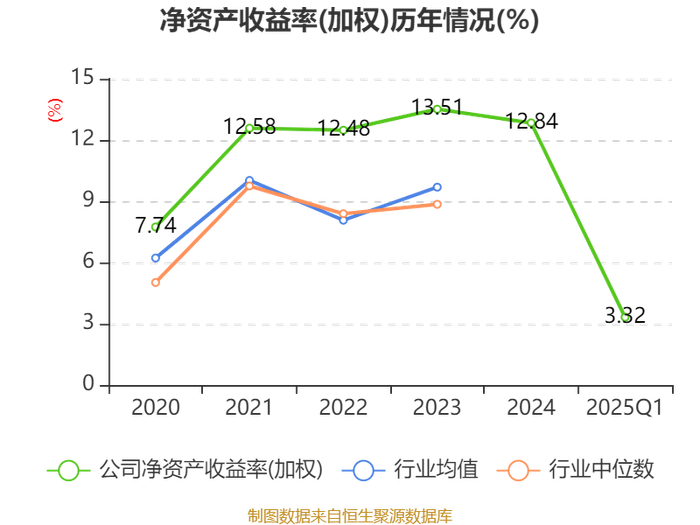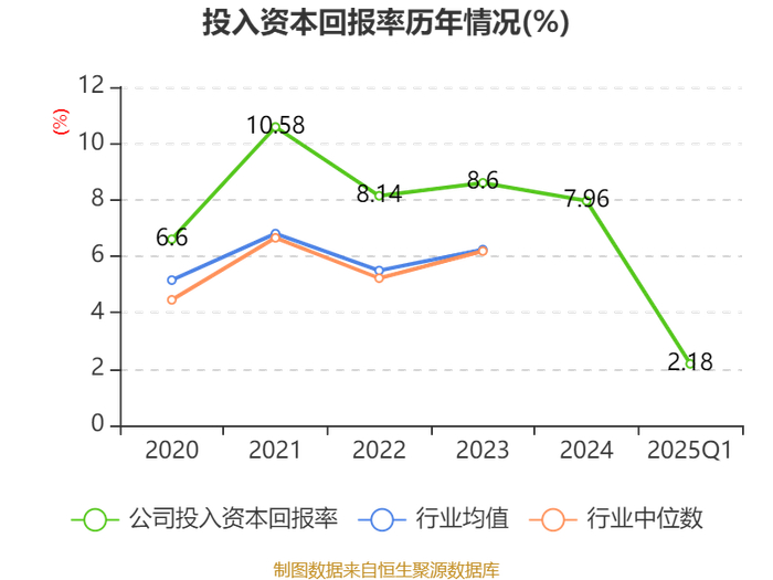 盈利能力方面, 2025年一季度公司加权平均净资产收益率为3.32%,同比上升0.02个百分点。公司2025年第一季度投入资本回报率为2.18%,较上年同期下降0.12个百分点。