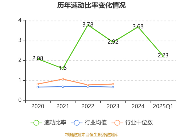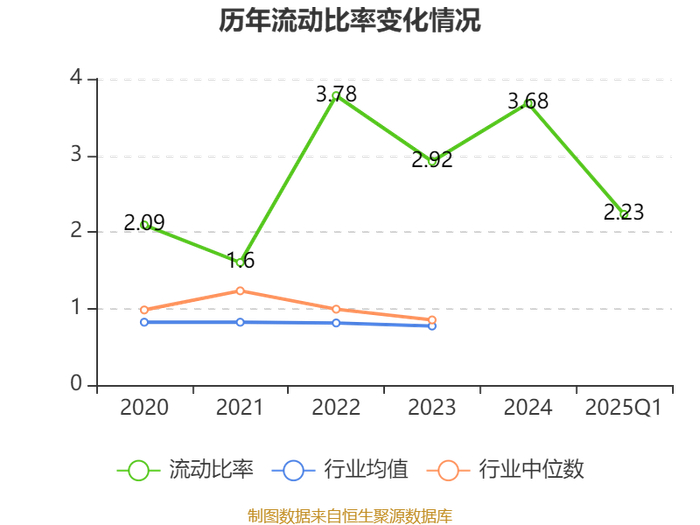 2025年第一季度,公司流动比率为2.23,速动比率为2.23。