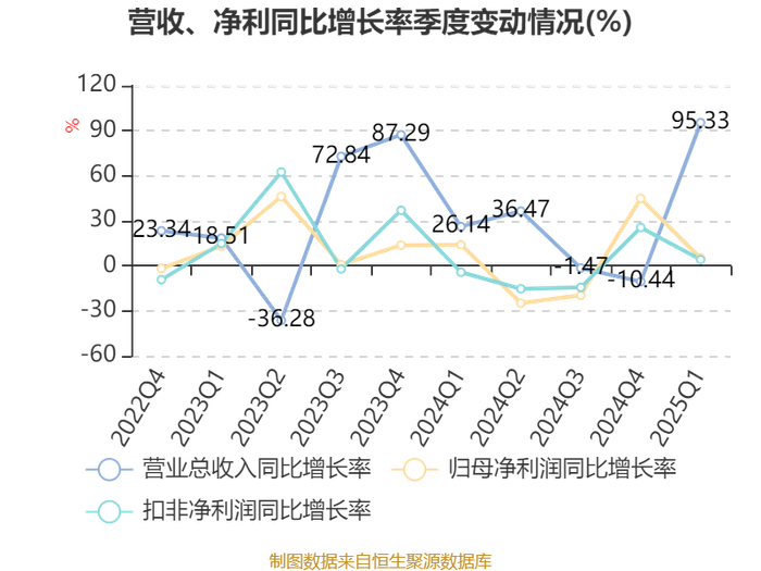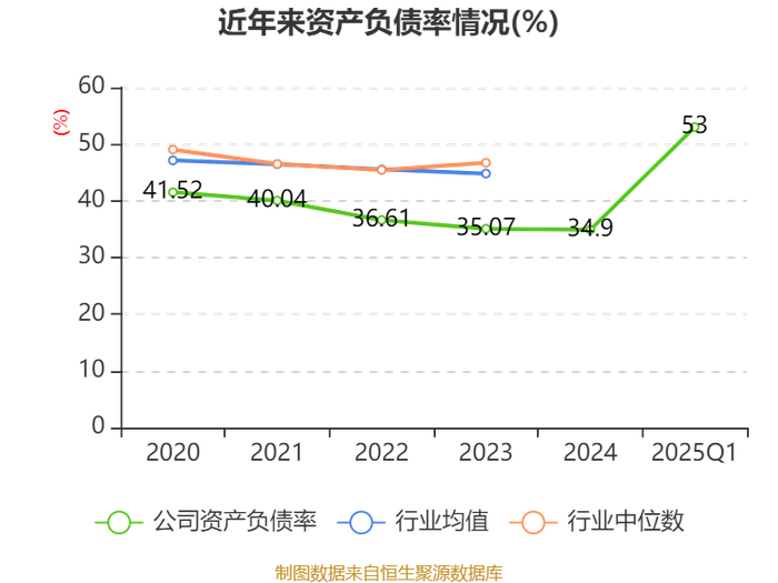 资产重大变化方面,截至2025年一季度末,公司其他流动资产较上年末减少100%,占公司总资产比重下降1.56个百分点;其他权益工具投资较上年末增加5482.45%,占公司总资产比重上升1.47个百分点;无形资产较上年末增加6.48%,占公司总资产比重上升0.67个百分点;在建工程合计较上年末增加58.39%,占公司总资产比重上升0.48个百分点。