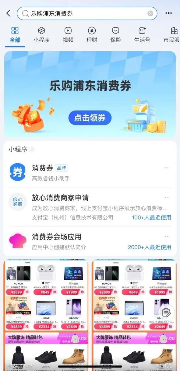 位置定位在上海的消费者均可通过支付宝、银联云闪付App搜索“乐购浦东”参与抢券。