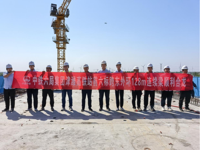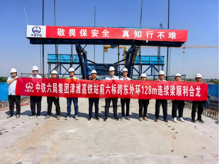 2025年5月1日凌晨,随着最后一方混凝土浇筑完成,由中铁六局承建的津潍高铁站前六标无棣特大桥跨东外环(72+128+72)米连续梁顺利完成合龙。