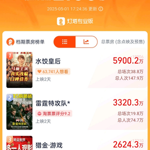 5月1日,竞争超级激烈的2025年五一档正式拉开帷幕。据灯塔专业版及猫眼专业版数据显示,截至5月1日17时24分,2025年五一档新片总票房(含预售及点映)突破2亿元,其中《水饺皇后》票房逼近6000万元在新片榜上领先。