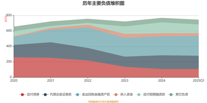 负债重大变化方面,截至2025年一季度末,公司应付短期融资款较上年末减少20.43%,占公司总资产比重下降2.52个百分点;卖出回购金融资产款较上年末增加4.56%,占公司总资产比重上升1.55个百分点;交易性金融负债合计较上年末增加127.62%,占公司总资产比重上升1.31个百分点;拆入资金较上年末减少8.93%,占公司总资产比重下降0.27个百分点。
