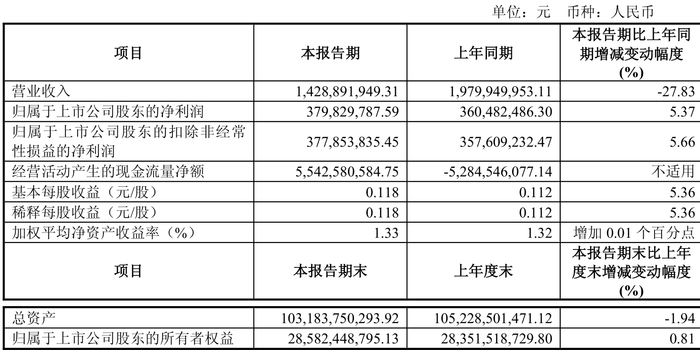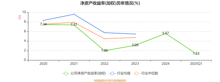 盈利能力方面, 2025年一季度公司加权平均净资产收益率为1.33%,同比上升0.01个百分点。