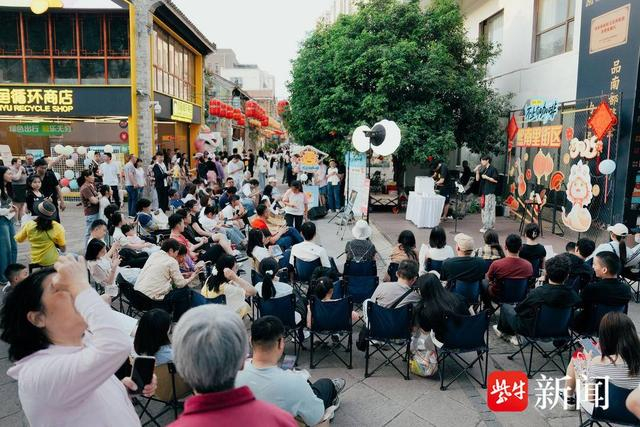 夜幕降临,熙南里的精彩持续上演。廿一熙园·评弹书场人头攒动,游客在琵琶三弦的悠扬旋律中,感受吴侬软语的细腻情致。和去年相比,今年的演出新增了多部经典选段,既有传统长篇弹词节选,也有新编短篇节目,兼顾老戏迷与新观众的不同需求。经典夜游项目《甘宅雅韵》也是热闹非凡,五一期间特别推出“熙奇游记”主题夜游。5月1日至4日17:30-21:00,只需打开抖音,搜索“甘熙宅第”账号,即可领取民俗夜游活动券,携家人朋友共赴一场“全民可享”的文化之约。在大板巷舞台上,清新民乐与流行歌曲依次奏响,微醺夜色里游客沉醉其中,尽享假期惬意时光。在享受演出之余,游客还能在街区看展。南京民俗博物馆围绕“金陵民居”“老南京民俗”“云锦非遗”举办三大主题展;清如许博艺馆举办中国画写生作品展;南京镜见律师博物馆在假期正常开放。