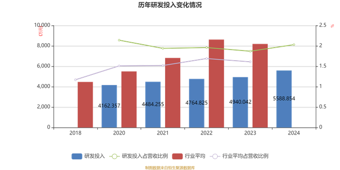 2024年全年,公司研发投入金额为5588.85万元,同比增长13.13%;研发投入占营业收入比例为2.03%,相比上年同期上升0.16个百分点。此外,公司全年研发投入资本化率为0%。