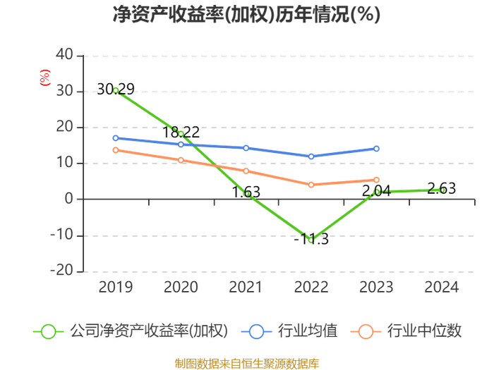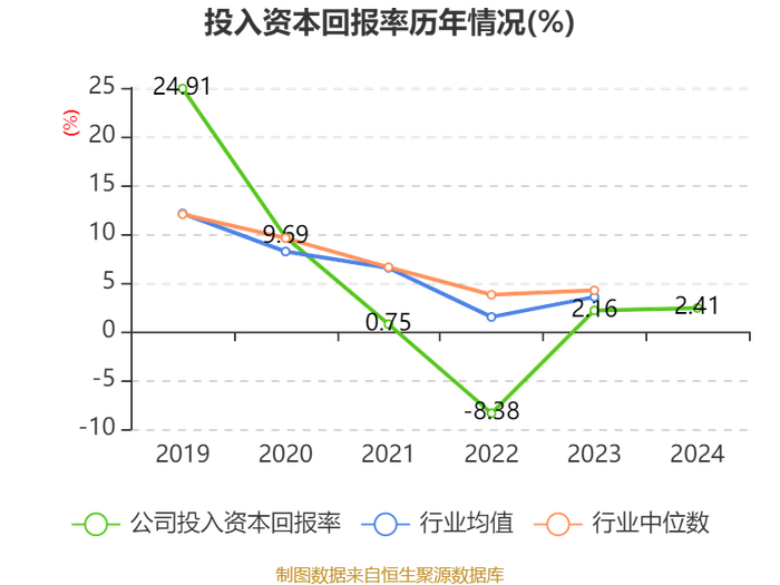 数据显示,2024年公司加权平均净资产收益率为2.63%,较上年同期上升0.59个百分点。公司2024年投入资本回报率为2.41%,较上年同期上升0.25个百分点。