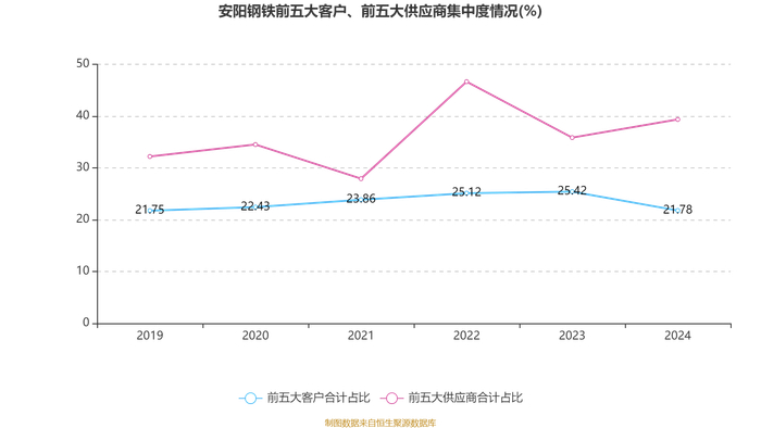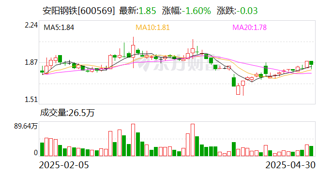 值得注意的是,中登公司数据显示,截至2025年4月25日,安阳钢铁27.5%股份处于质押状态。年报显示,第一大股东安阳钢铁集团有限责任公司质押5.5亿股公司股份,占其全部持股的28.51%。