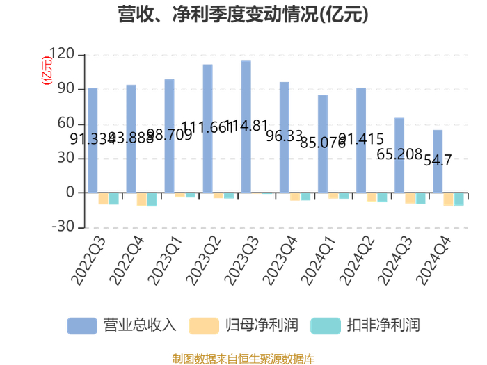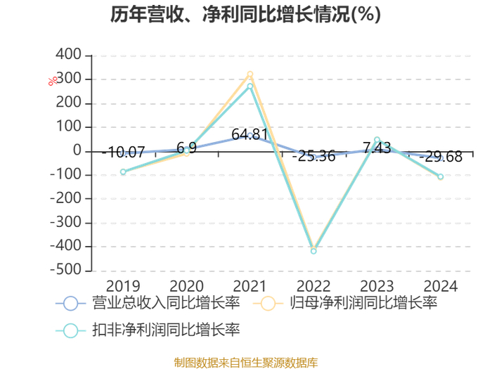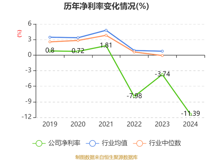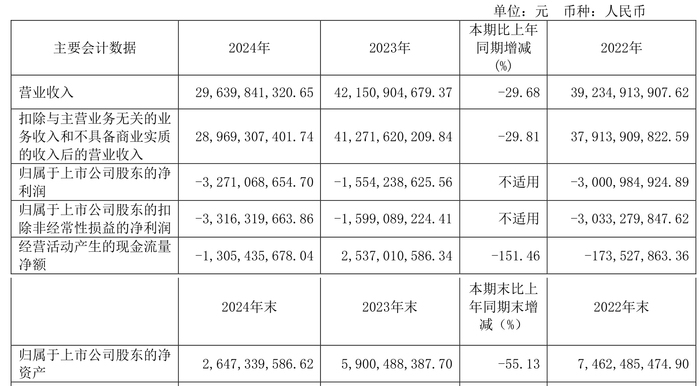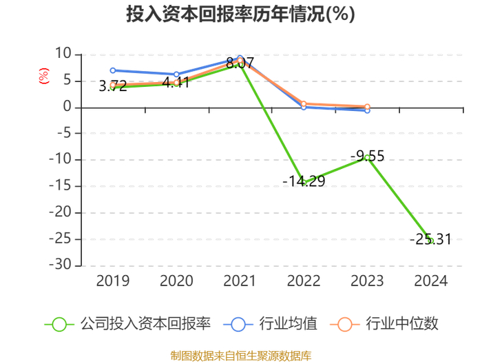 数据显示,2024年公司加权平均净资产收益率为-76.38%,较上年同期下降53.1个百分点。公司2024年投入资本回报率为-25.31%,较上年同期下降15.76个百分点。