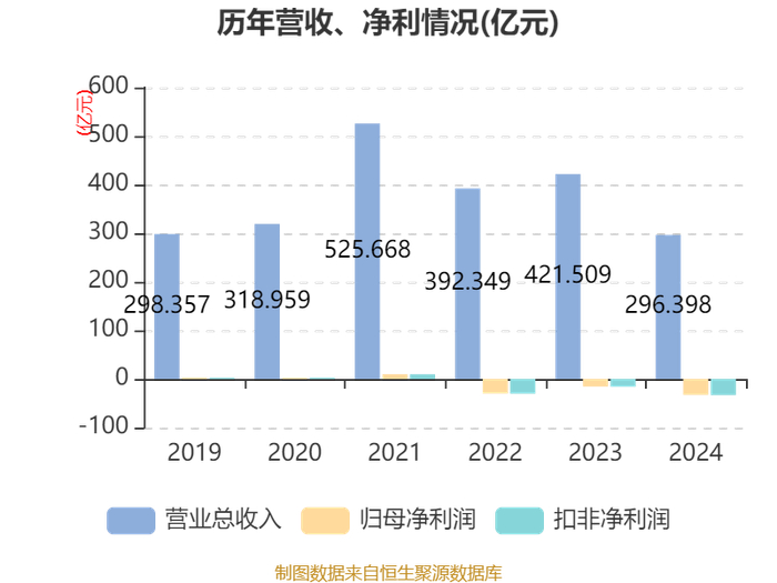 中证智能财讯安阳钢铁(600569)4月30日披露2024年年度报告。2024年,公司实现营业总收入296.4亿元,同比下降29.68%;归母净利润亏损32.71亿元,上年同期亏损15.54亿元;扣非净利润亏损33.16亿元,上年同期亏损15.99亿元;经营活动产生的现金流量净额为-13.05亿元,上年同期为25.37亿元;报告期内,安阳钢铁基本每股收益为-1.139元,加权平均净资产收益率为-76.38%。