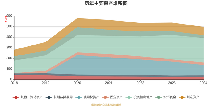 资产重大变化方面,截至2024年末,公司使用权资产较上年末减少23.75%,占公司总资产比重下降4.3个百分点;投资性房地产较上年末增加1.36%,占公司总资产比重上升4.08个百分点;货币资金较上年末减少25.42%,占公司总资产比重下降1.29个百分点;长期待摊费用较上年末增加12.66%,占公司总资产比重上升0.55个百分点。