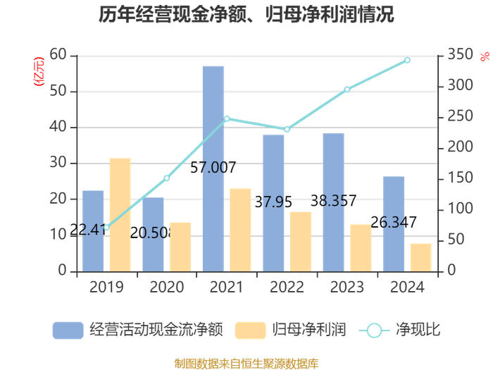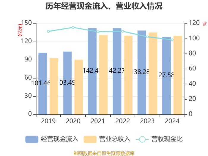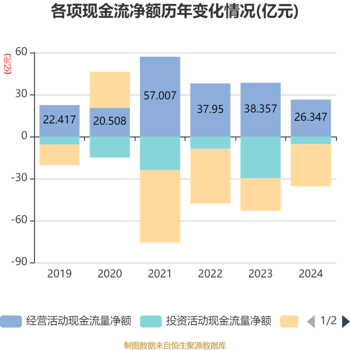 截至2024年,公司经营活动现金流净额为26.35亿元,同比下降31.31%;筹资活动现金流净额-30.12亿元,同比减少6.77亿元;投资活动现金流净额-5.46亿元,上年同期为-29.68亿元。