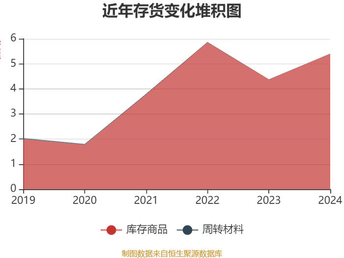 从存货变动来看,截至2024年末,公司存货账面价值为5.4亿元,占净资产的2.67%,较上年末增加1.02亿元。其中,存货跌价准备为40.12万元,计提比例为0.07%。
