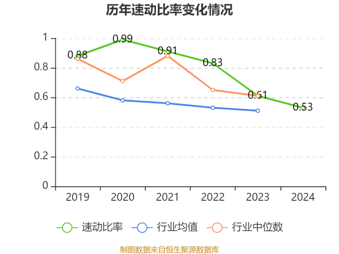 2024年,公司流动比率为0.58,速动比率为0.53。