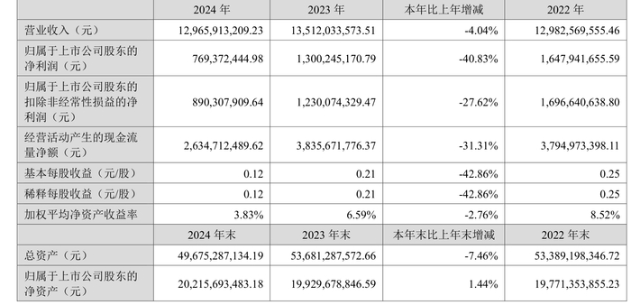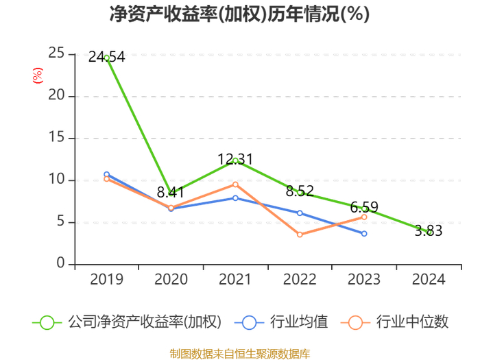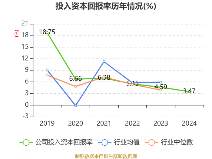 数据显示,2024年公司加权平均净资产收益率为3.83%,较上年同期下降2.76个百分点。公司2024年投入资本回报率为3.47%,较上年同期下降1.12个百分点。