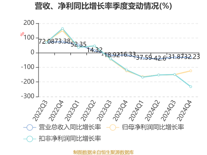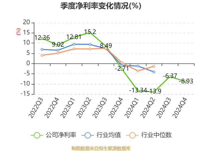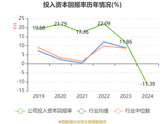 数据显示,2024年公司加权平均净资产收益率为-13.1%,较上年同期下降29.3个百分点。公司2024年投入资本回报率为-11.39%,较上年同期下降23.25个百分点。