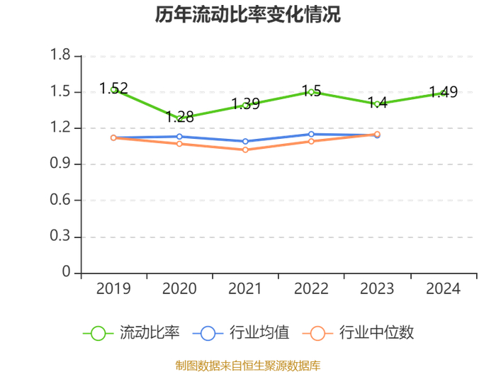 2024年,公司流动比率为1.49,速动比率为1.27。