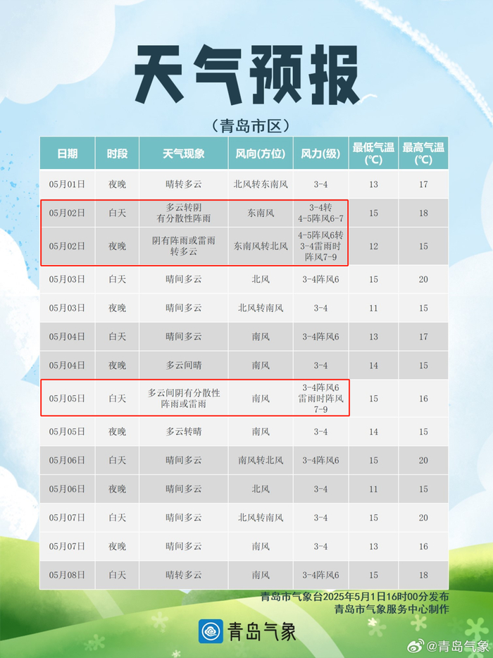 外出记得带伞!今日青岛全天有雨,雷雨时阵风9级!接下来还有一场雨→