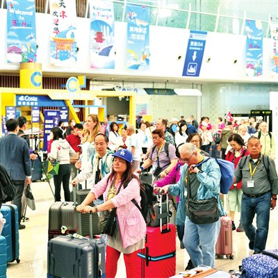 本报讯(记者 万红)昨天是“五一”假期的第一天,天津国际邮轮母港热闹非凡,随着皇家加勒比国际游轮“海洋赞礼号”、东方邮轮“梦想号”、大洋邮轮“芮吉塔号”3艘国际邮轮同时靠泊,近1.5万名旅客从天津出入境,其中办理“240小时过境免签”的旅客超过400人次,双双创下邮轮复航以来的单日纪录。