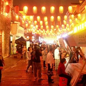 夜幕降临,在樟树三皇宫文化旅游街区,青砖灰瓦间灯火流转、药香氤氲。