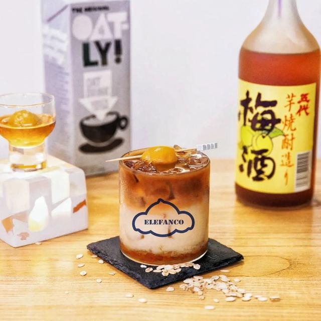 精选日本进口梅子酒为基底,融入柔滑燕麦奶的绵密醇厚,再以朗姆酒发酵的酒香豆点睛——每一口都像坠入微醺的温柔乡。梅子的酸甜灵动、燕麦的谷物暖香与朗姆的馥郁酒韵层层交织,尾调泛起浅浅发酵感,仿佛舌尖上的和风小夜曲。采用云南当季青梅点缀,增添了一抹清新自然的果香。