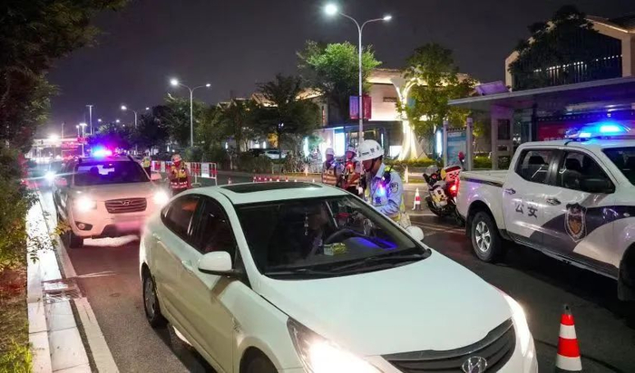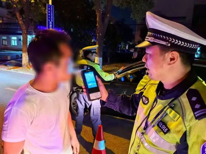 5月1日晚,苏州交警在澄阳路、思贤路、凤阳路等地开展零点行动,查处酒醉驾违法行为,守护假期道路交通安全。