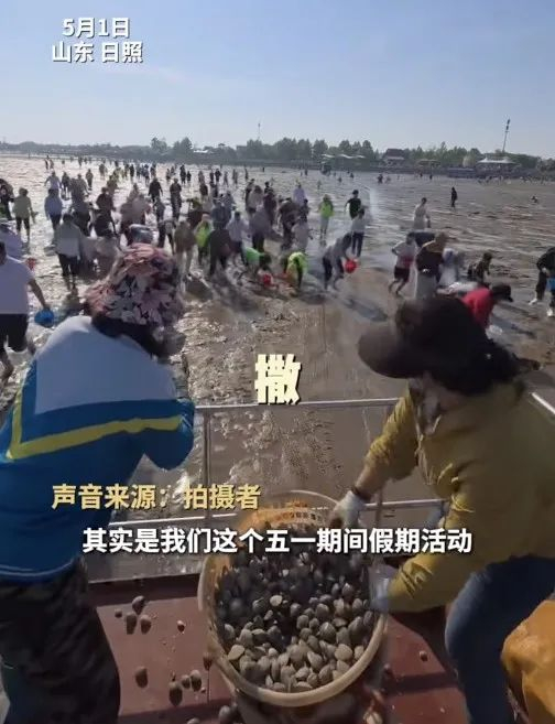 5月1日,山东日照一景区怕游客赶不到海,现场撒蛤蜊提升游客赶海体验,主打一个让游客“绝不空手而归”,引发网友热议。