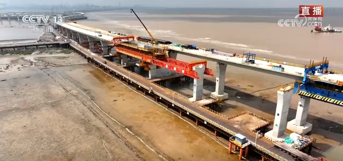 记者所在的这个区域将来会起到重要连接作用,因为一头直接连接港口,一头连接城市,全线贯通之后,集装箱车司机从宁波舟山港北仑港口装车前往上海、嘉兴方向,可缩短通行距离约40km,节约通行时间约20分钟,同时还可以大大减轻北仑城区客货混行的交通压力。当然,这个区域的施工难度相对较高,在海域施工会遇到大面积的滩涂区域,地质软、施工难度高。这些问题如何解决?工作人员告诉记者,每一根桥桩都钻到地下100米,比陆地软基土地还要再深20—30米,直径也从1.5米扩大至1.8米,保障桥体质量更高、结构更稳固。