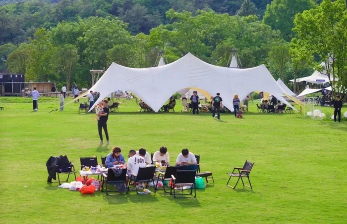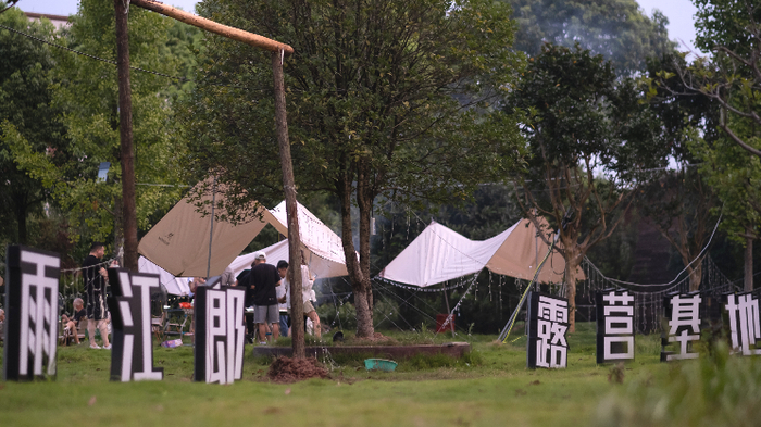 隐匿于安吉县山谷的小杭坑营地,被连绵竹海环抱,溪流穿行其间,水杉林与茶园错落交织,被誉为“都市人的露营天堂”。200亩的营地空间被划分为自搭建区、拎包入住区及中央帐篷区,新手可拎包入住,老手则可在自搭建区打造专属天地。