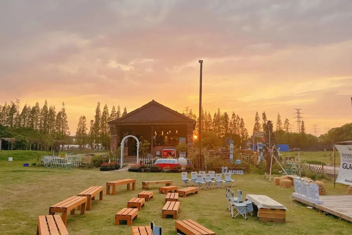 花屿林露营小镇位于宁波市江北区洪塘街道,营地面积4万多平方米,是宁波不可多得的“城市”营地之一。营地内绿化覆盖率高达90%,拥有超大草坪,分为主营区、森林帐篷区、BC营区、草坪自搭区,还有免费停车场、共享农场等,水电卫齐全。